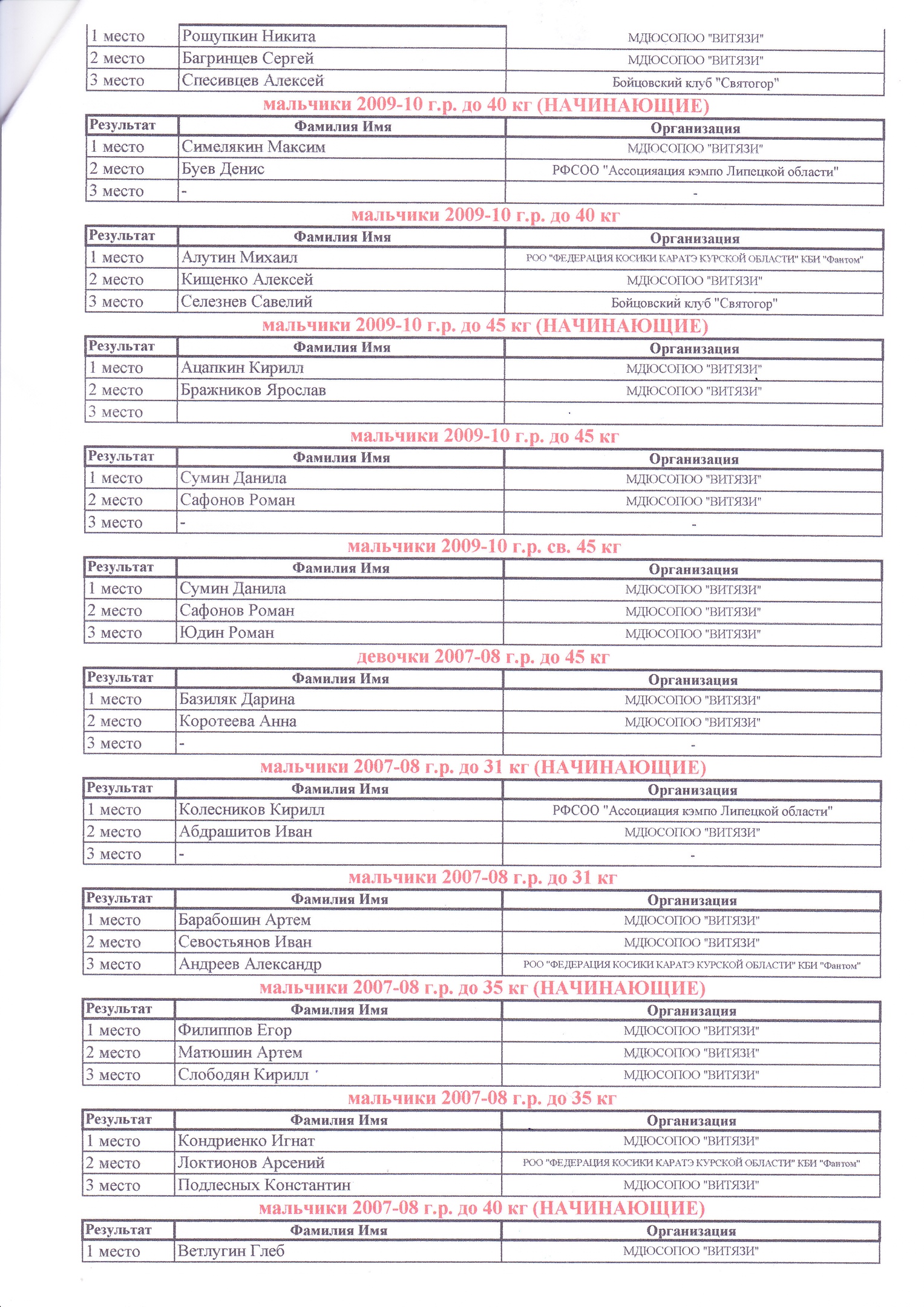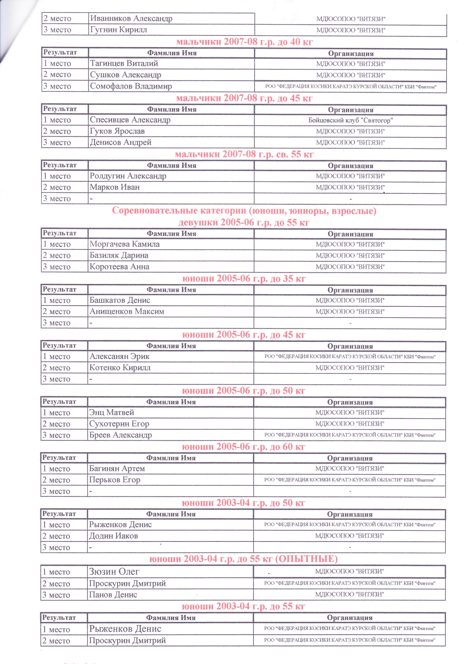 Курскую область представлял Клуб Косики каратэ и смешанных боевых искусств "Фантом" (Курское отделение "ВИТЯЗЕЙ"): ShereshkovTeam и EpifanovTeam (тренеры Шерешков А. и Епифанов А.).
